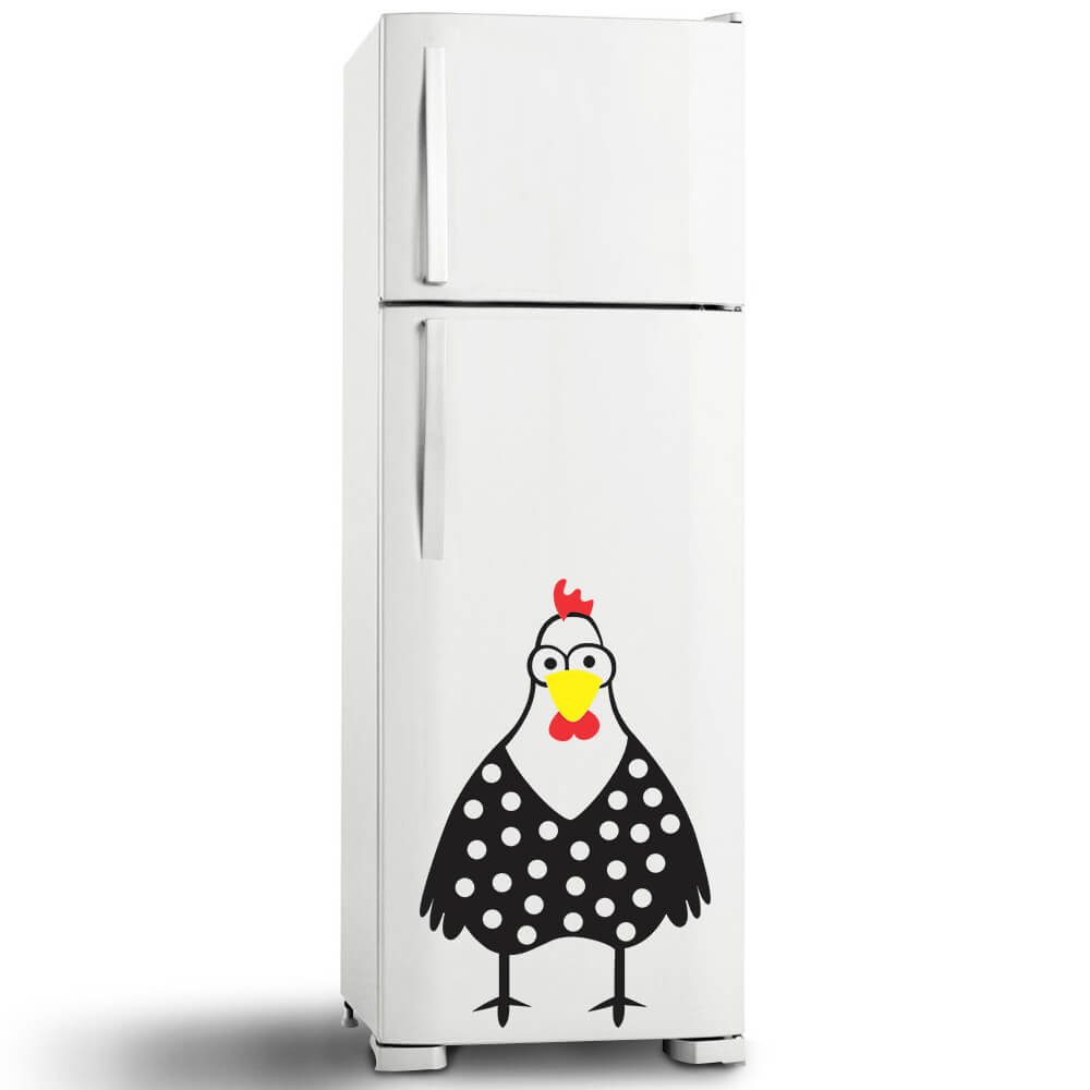 Este modelo, Adesivo de Geladeira Galinha Zoio, pode ser usado em praticamente qualquer superfície lisa, pode ser utilizado para decorar quarto infantil, sala, sala de estar, sala de tv, cozinha, hall de entrada, quarto de casal, bar, espaço gourmet, cabeceira de cama, escritório, banheiro, box de banheiro, etc...