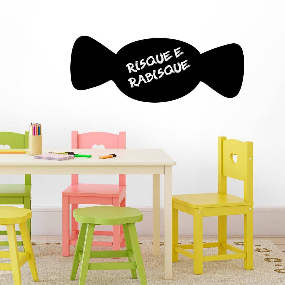 Este modelo, Adesivo de Parede Lousa Bala, pode ser usado em praticamente qualquer superfície lisa, pode ser utilizado para decorar quarto infantil, sala, sala de estar, sala de tv, cozinha, hall de entrada, quarto de casal, bar, espaço gourmet, cabeceira de cama, escritório, banheiro, box de banheiro, etc...