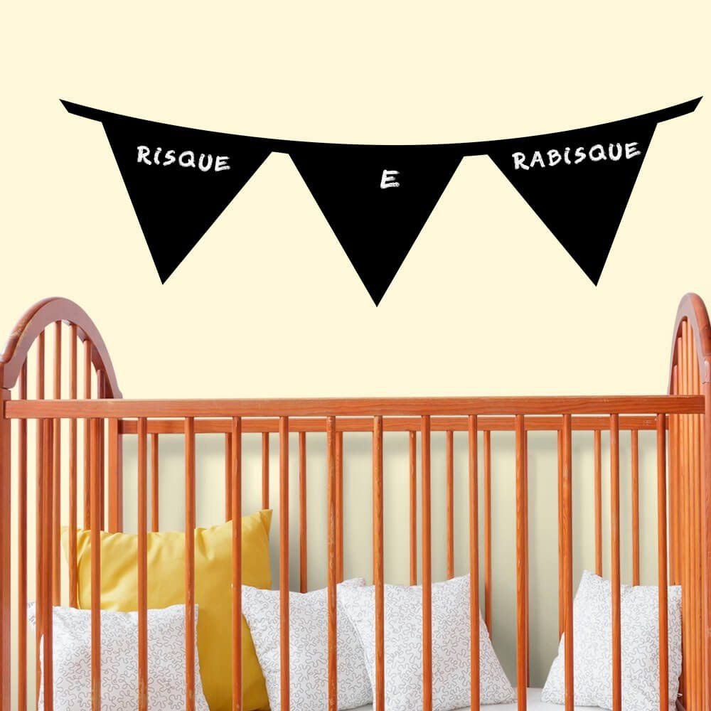 Este modelo, Adesivo de Parede Lousa Bandeirinhas, pode ser usado em praticamente qualquer superfície lisa, pode ser utilizado para decorar quarto infantil, sala, sala de estar, sala de tv, cozinha, hall de entrada, quarto de casal, bar, espaço gourmet, cabeceira de cama, escritório, banheiro, box de banheiro, etc...