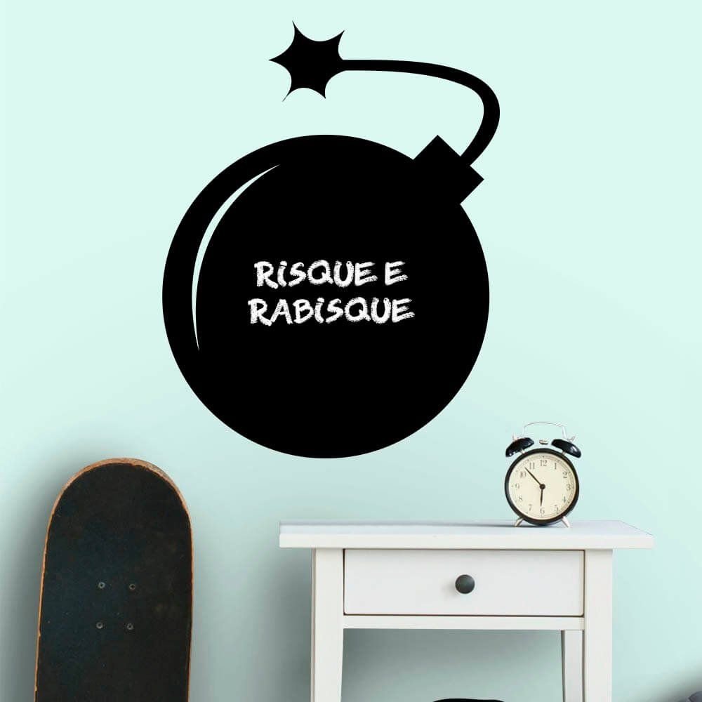 Este modelo, Adesivo de Parede Lousa Bomba, pode ser usado em praticamente qualquer superfície lisa, pode ser utilizado para decorar quarto infantil, sala, sala de estar, sala de tv, cozinha, hall de entrada, quarto de casal, bar, espaço gourmet, cabeceira de cama, escritório, banheiro, box de banheiro, etc...