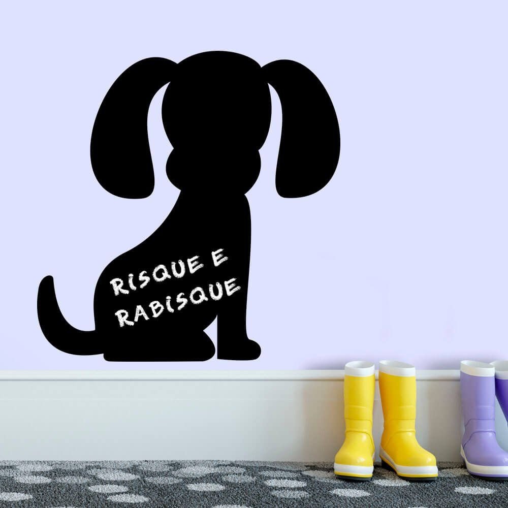 Este modelo, Adesivo de Parede Lousa Dog, pode ser usado em praticamente qualquer superfície lisa, pode ser utilizado para decorar quarto infantil, sala, sala de estar, sala de tv, cozinha, hall de entrada, quarto de casal, bar, espaço gourmet, cabeceira de cama, escritório, banheiro, box de banheiro, etc...