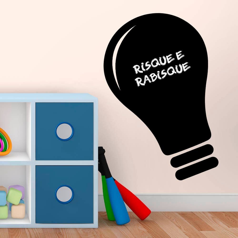Este modelo, Adesivo de Parede Lousa Lâmpada, pode ser usado em praticamente qualquer superfície lisa, pode ser utilizado para decorar quarto infantil, sala, sala de estar, sala de tv, cozinha, hall de entrada, quarto de casal, bar, espaço gourmet, cabeceira de cama, escritório, banheiro, box de banheiro, etc...