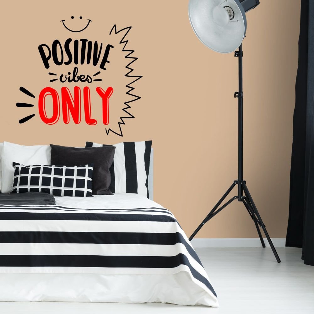 Este modelo, Adesivo de Parede Positive Vibes, pode ser usado em praticamente qualquer superfície lisa, pode ser utilizado para decorar quarto infantil, sala, sala de estar, sala de tv, cozinha, hall de entrada, quarto de casal, bar, espaço gourmet, cabeceira de cama, escritório, banheiro, box de banheiro, etc...