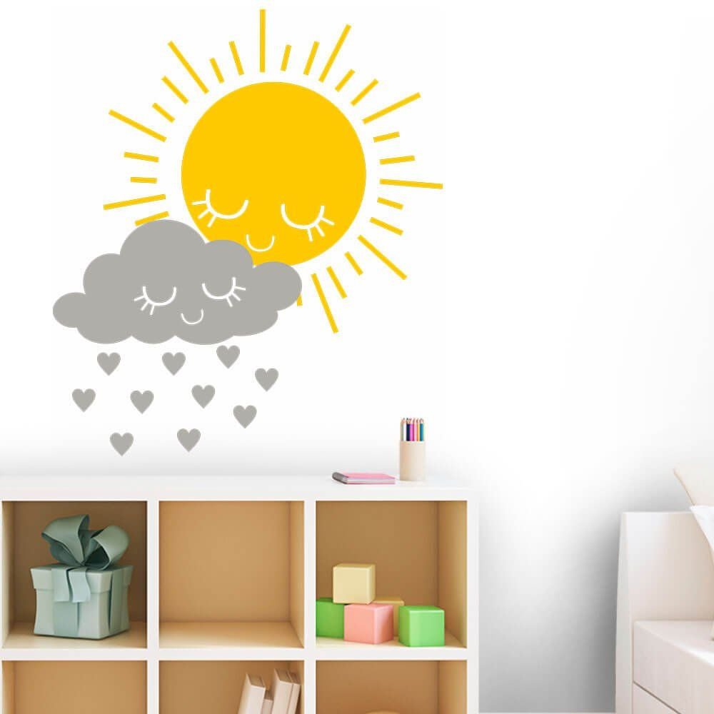 Este modelo, Adesivo de Parede Sol e Chuva, pode ser usado em praticamente qualquer superfície lisa, pode ser utilizado para decorar quarto infantil, sala, sala de estar, sala de tv, cozinha, hall de entrada, quarto de casal, bar, espaço gourmet, cabeceira de cama, escritório, banheiro, box de banheiro, etc...