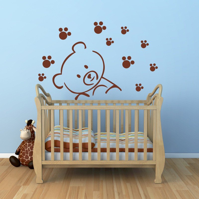 Este modelo, Adesivo de Parede Urso com pegada, pode ser usado em praticamente qualquer superfície lisa, pode ser utilizado para decorar quarto infantil, sala, sala de estar, sala de tv, cozinha, hall de entrada, quarto de casal, bar, espaço gourmet, cabeceira de cama, escritório, banheiro, box de banheiro, etc...