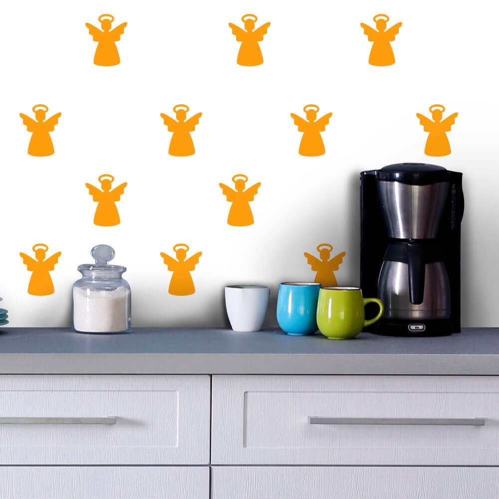 Este modelo, Kit de Adesivos de Parede Anjos, pode ser usado em praticamente qualquer superfície lisa, pode ser utilizado para decorar quarto infantil, sala, sala de estar, sala de tv, cozinha, hall de entrada, quarto de casal, bar, espaço gourmet, cabeceira de cama, escritório, banheiro, box de banheiro, etc...