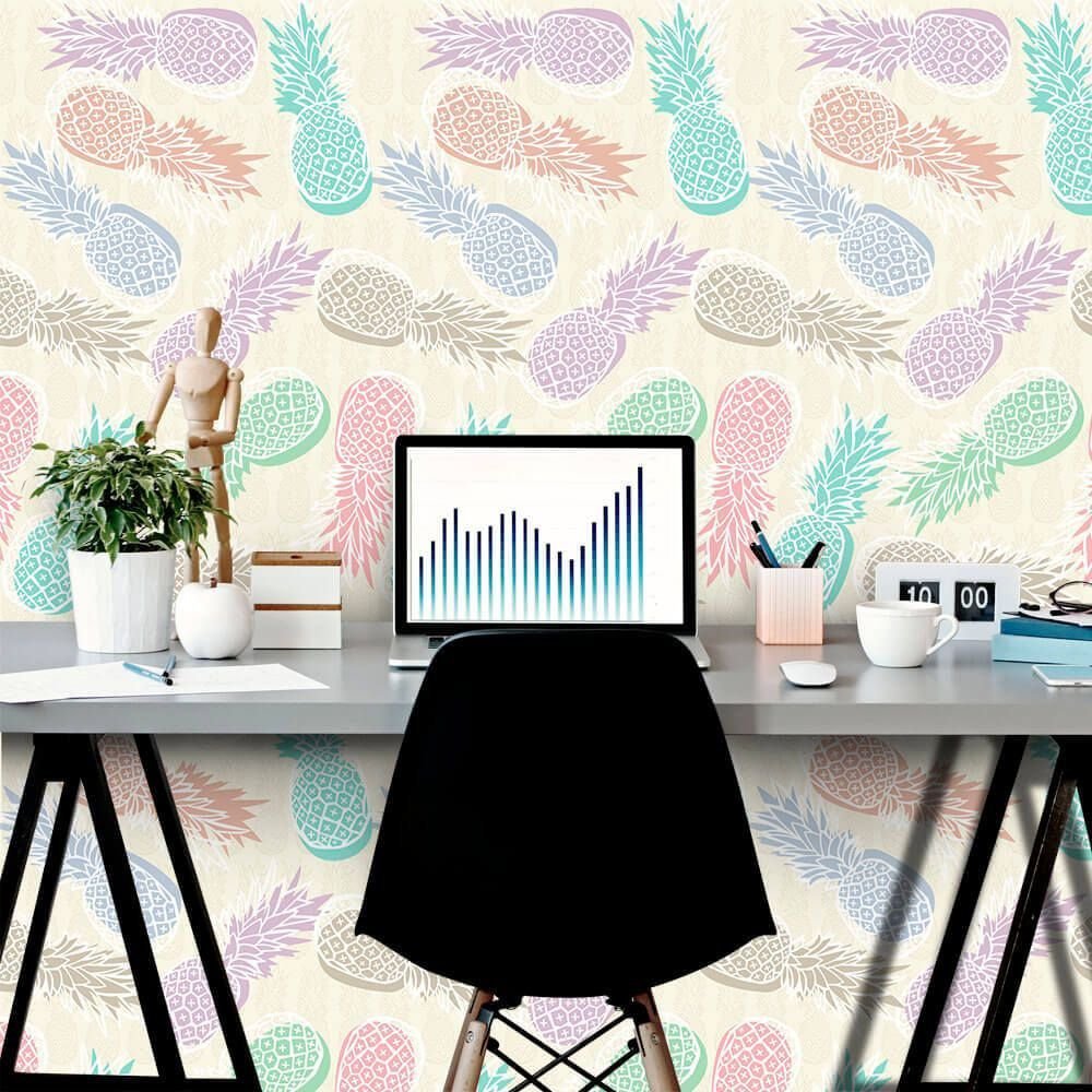 O Papel de Parede Abacaxi Urbano Color é fabricado em adesivo vinil fosco 3M, autocolante e com excelente qualidade de impressão. Não precisando de cola.