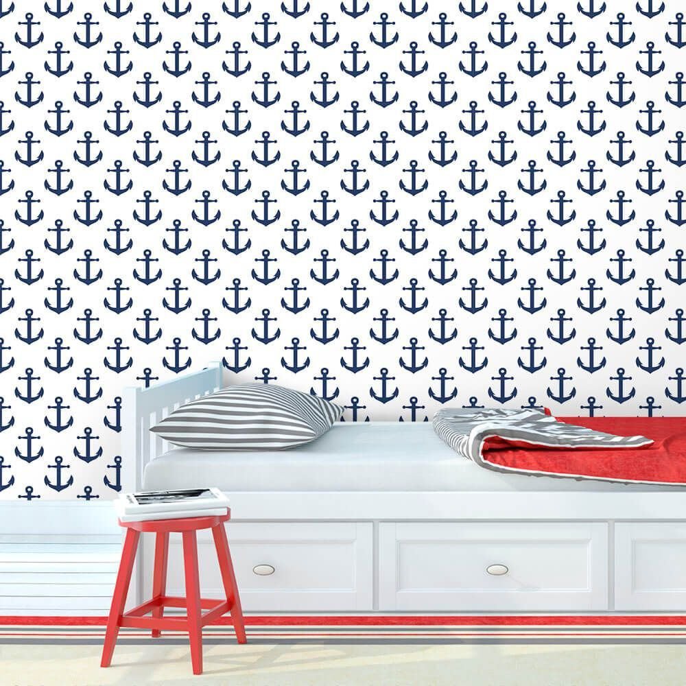 O Papel de Parede Âncora Navy é fabricado em adesivo vinil fosco 3M, autocolante e com excelente qualidade de impressão. Não precisando de cola.