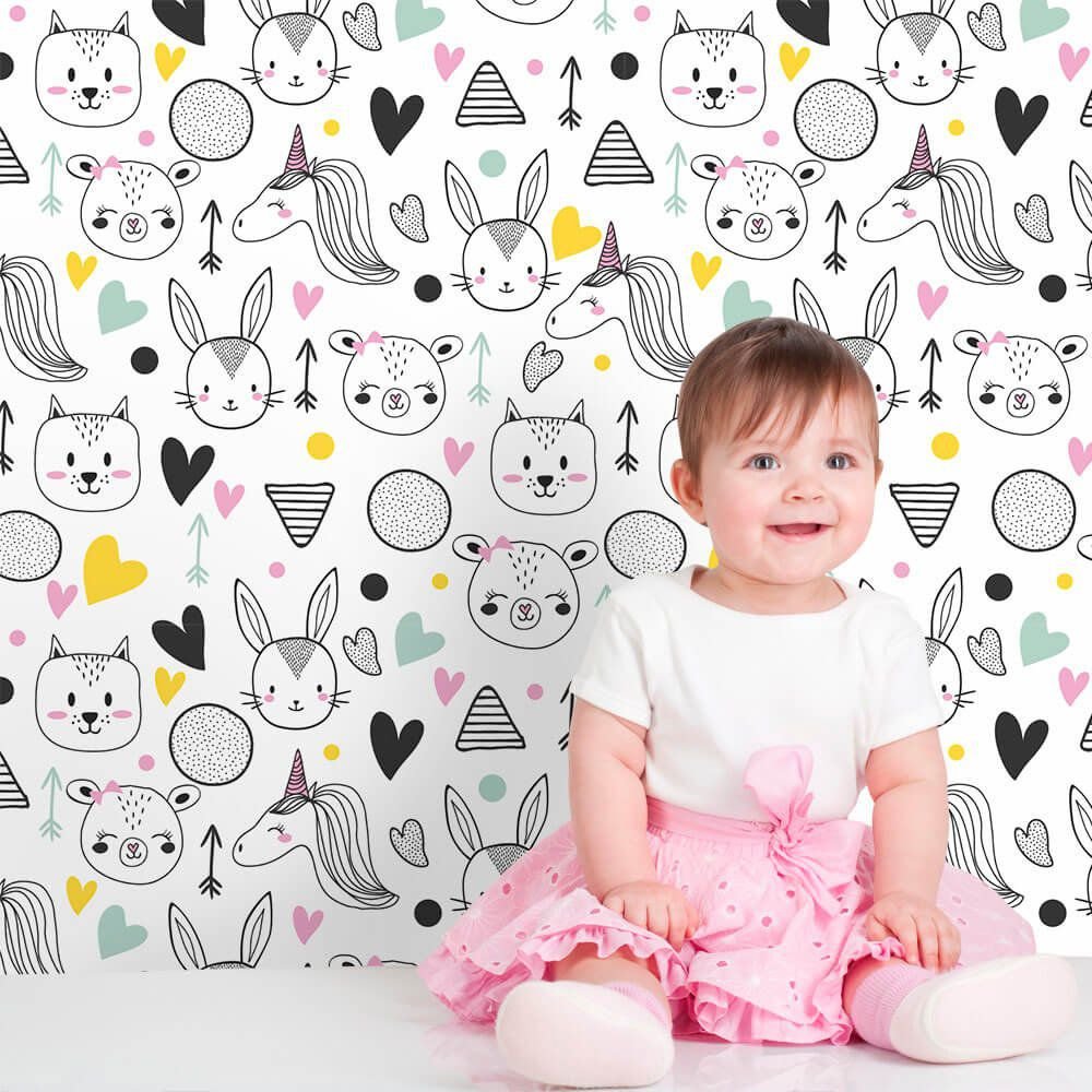 O Papel de Parede Animais Ilustração é fabricado em adesivo vinil fosco 3M, autocolante e com excelente qualidade de impressão. Não precisando de cola.