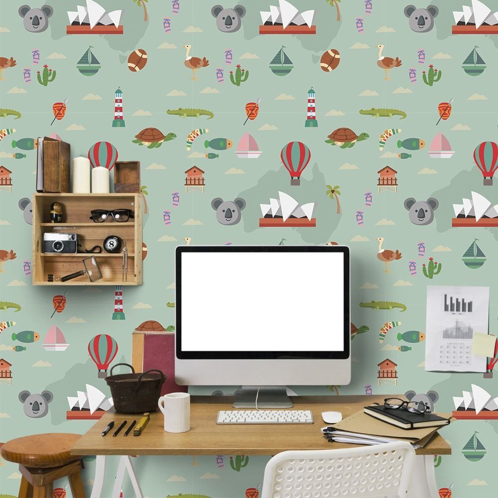 O Papel de Parede Australia é fabricado em adesivo vinil fosco 3M, autocolante e com excelente qualidade de impressão. Não precisando de cola.