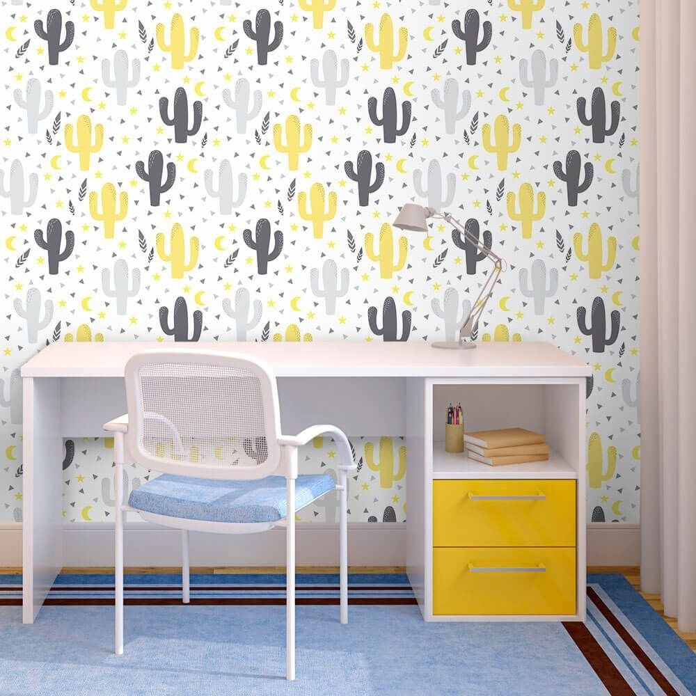 O Papel de Parede Cactos Clean é fabricado em adesivo vinil fosco 3M, autocolante e com excelente qualidade de impressão. Não precisando de cola.