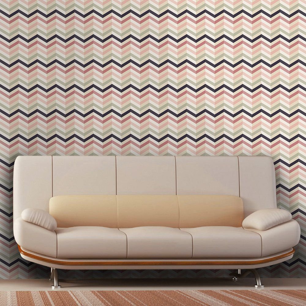 O Papel de Parede Chevron Chroma é fabricado em adesivo vinil fosco 3M, autocolante e com excelente qualidade de impressão. Não precisando de cola.