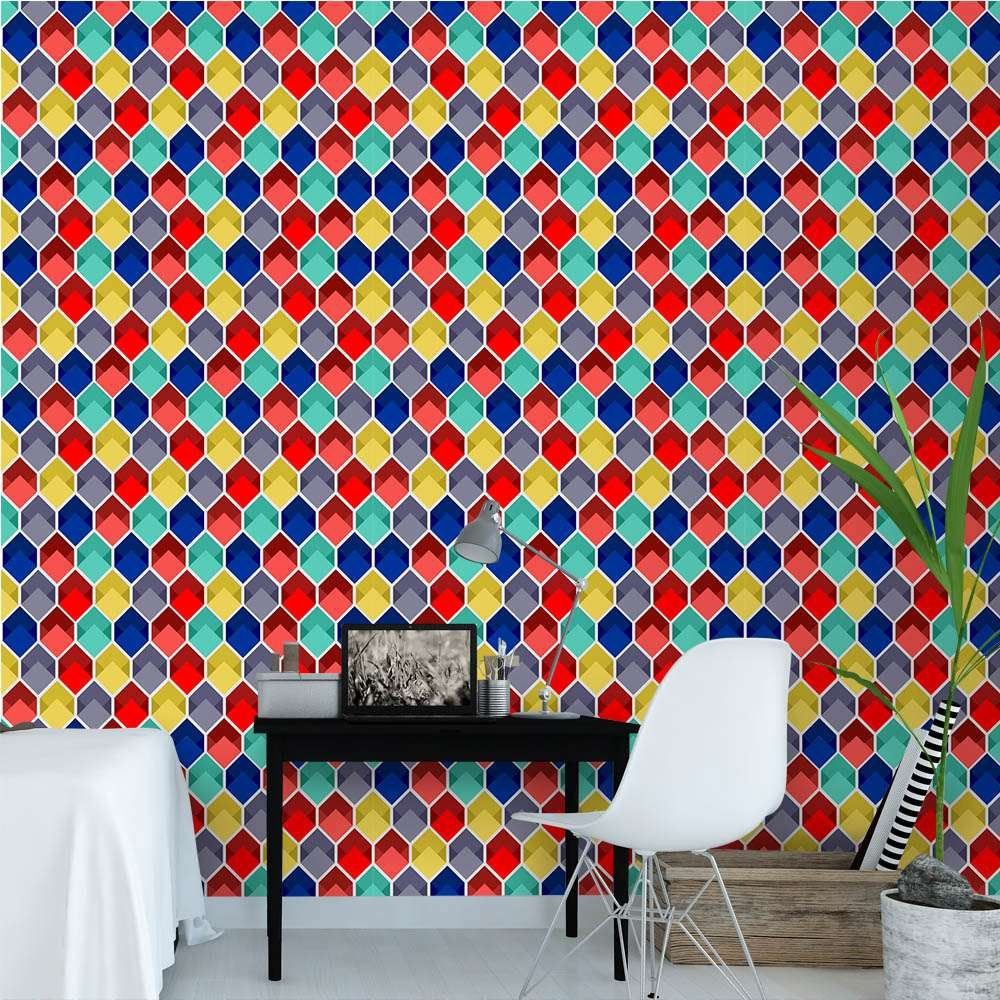 O Papel de Parede Colmeia 3D Color é fabricado em adesivo vinil fosco 3M, autocolante e com excelente qualidade de impressão. Não precisando de cola.