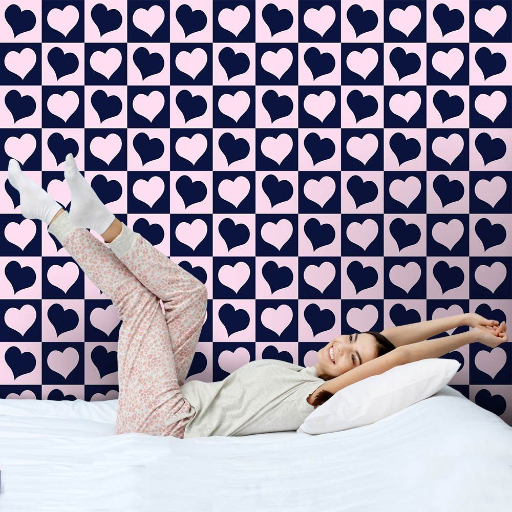 O Papel de Parede Coração Xadrez é fabricado em adesivo vinil fosco 3M, autocolante e com excelente qualidade de impressão. Não precisando de cola.