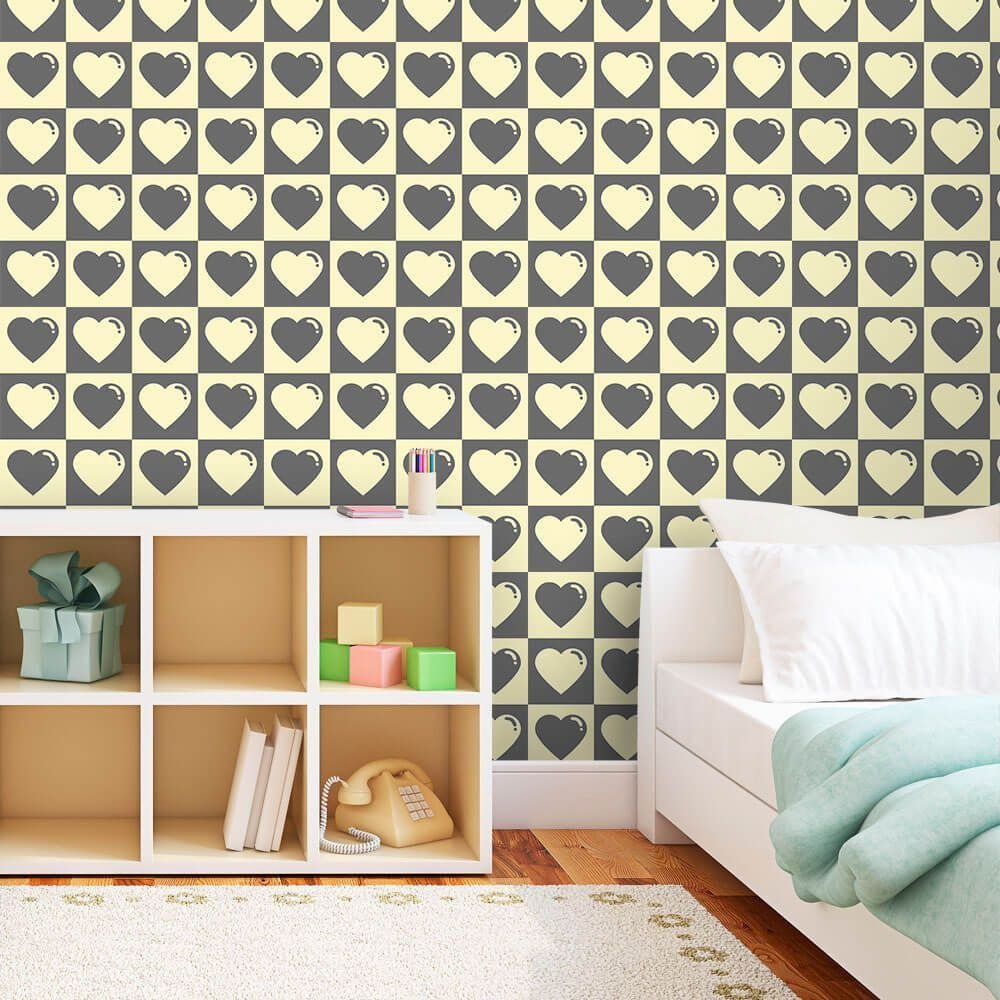 PAPEL DE PAREDE CORAÇÕES CUTE GRAY