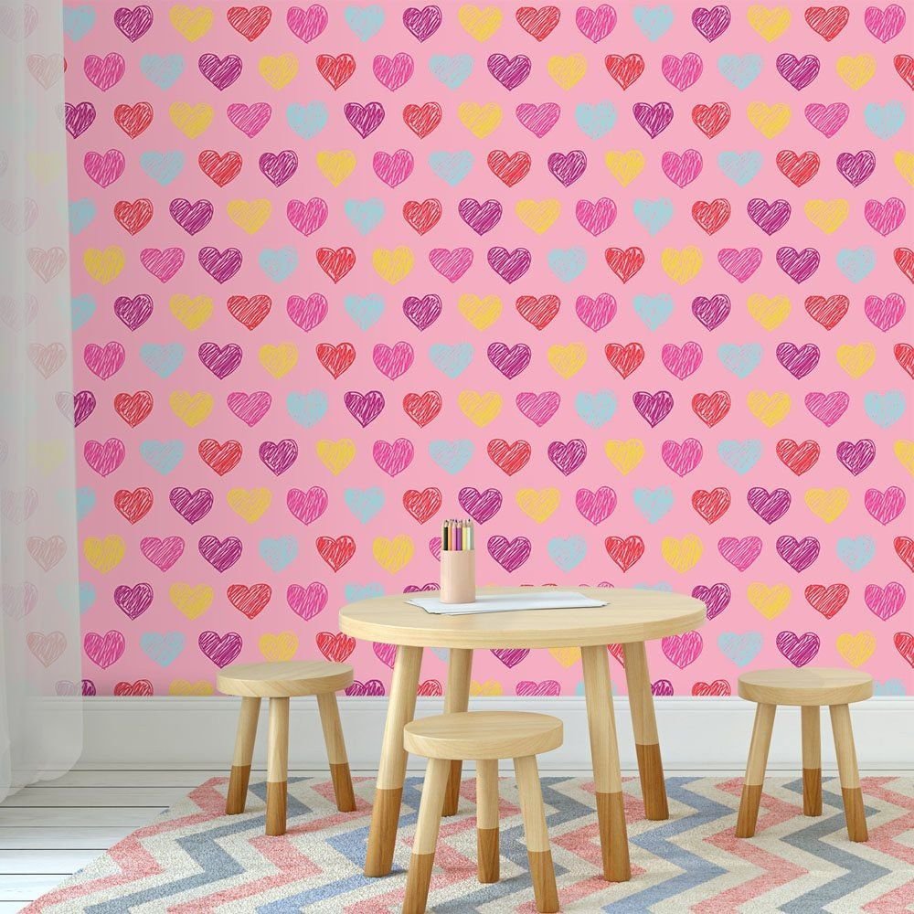 O Papel de Parede Corações Girl é fabricado em adesivo vinil fosco 3M, autocolante e com excelente qualidade de impressão. Não precisando de cola.