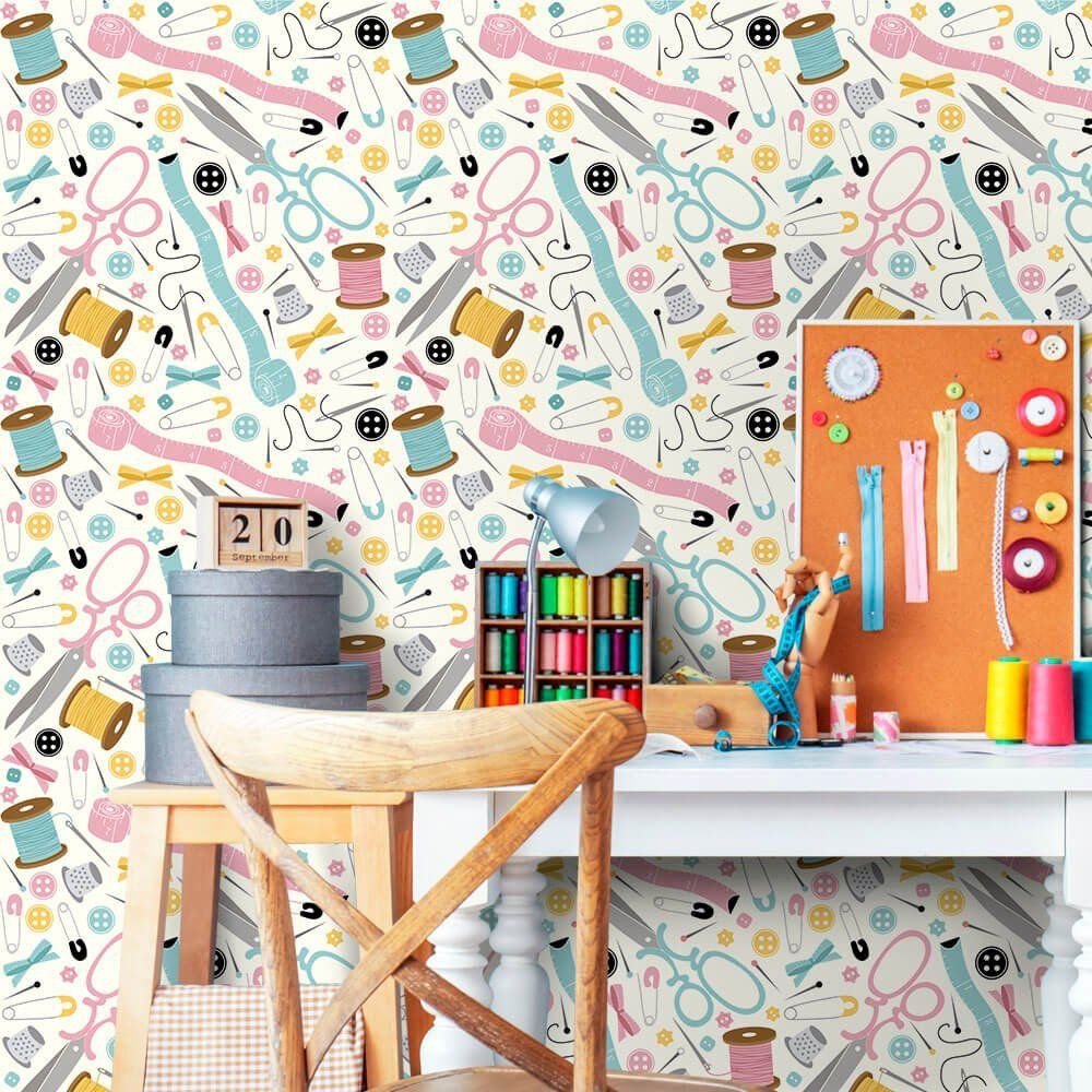 O Papel de Parede Costura é fabricado em adesivo vinil fosco 3M, autocolante e com excelente qualidade de impressão. Não precisando de cola.