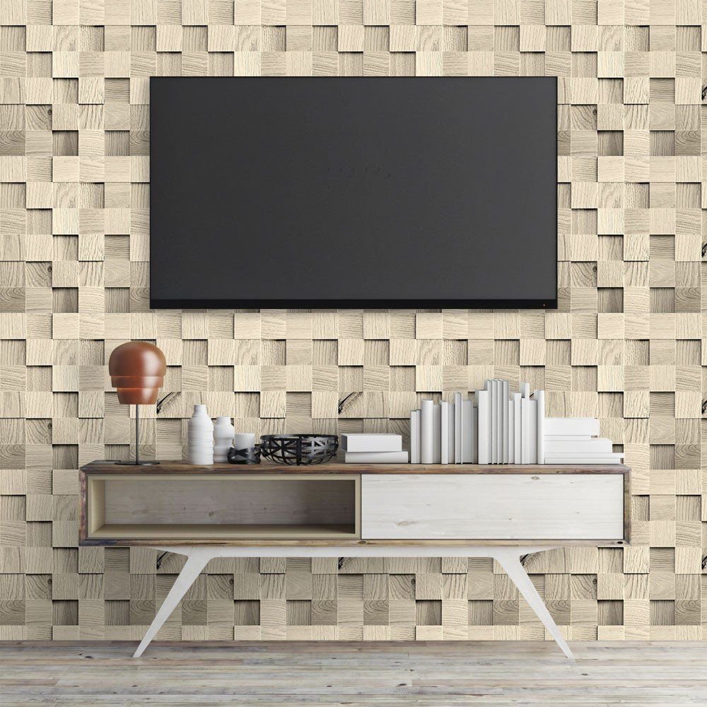 PAPEL DE PAREDE MADEIRA CUBOS RÚSTICO