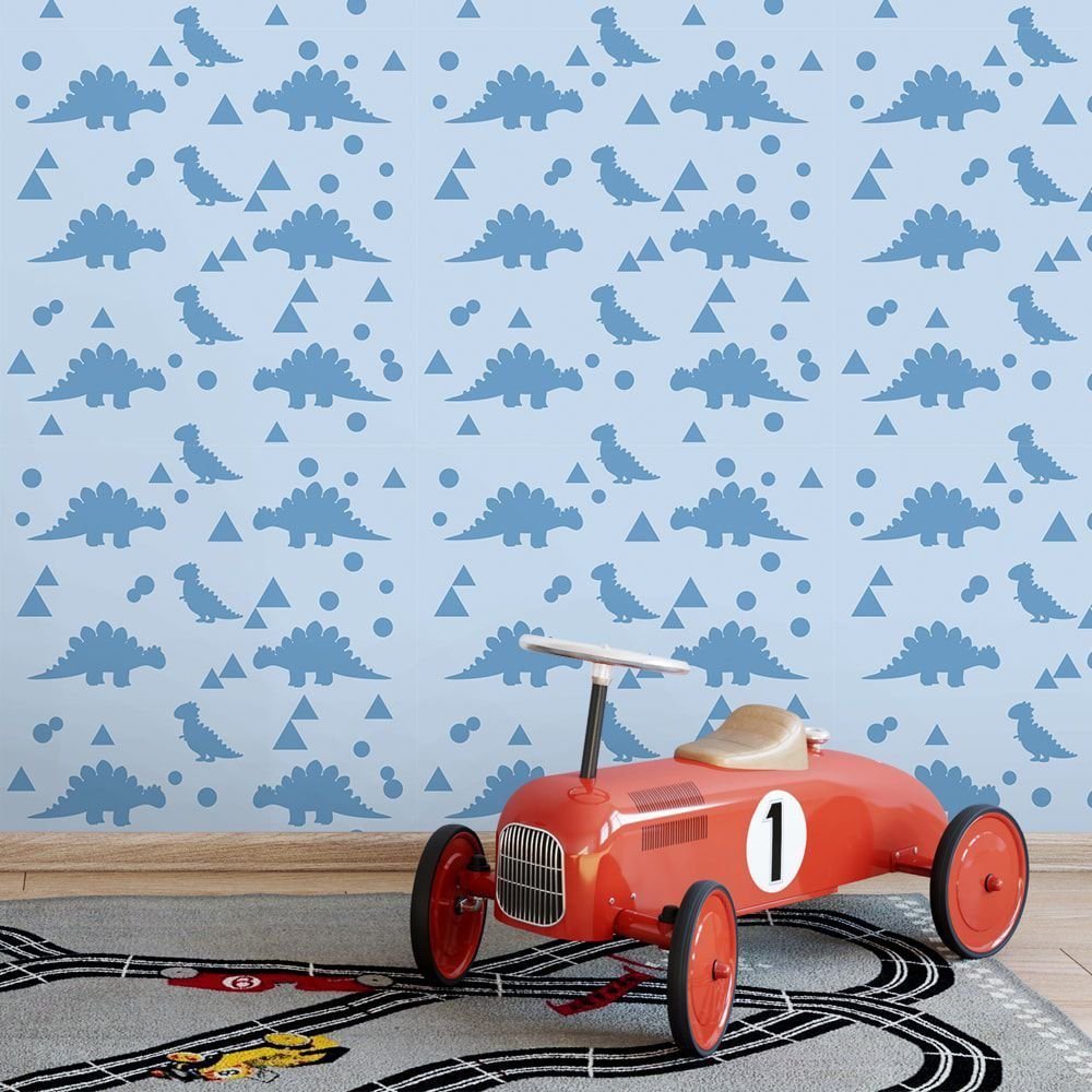 O Papel de Parede Dino Azul é fabricado em adesivo vinil fosco 3M, autocolante e com excelente qualidade de impressão. Não precisando de cola.