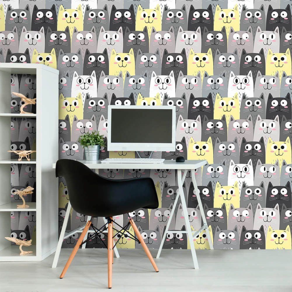 O Papel de Parede Faces Cats é fabricado em adesivo vinil fosco 3M, autocolante e com excelente qualidade de impressão. Não precisando de cola.