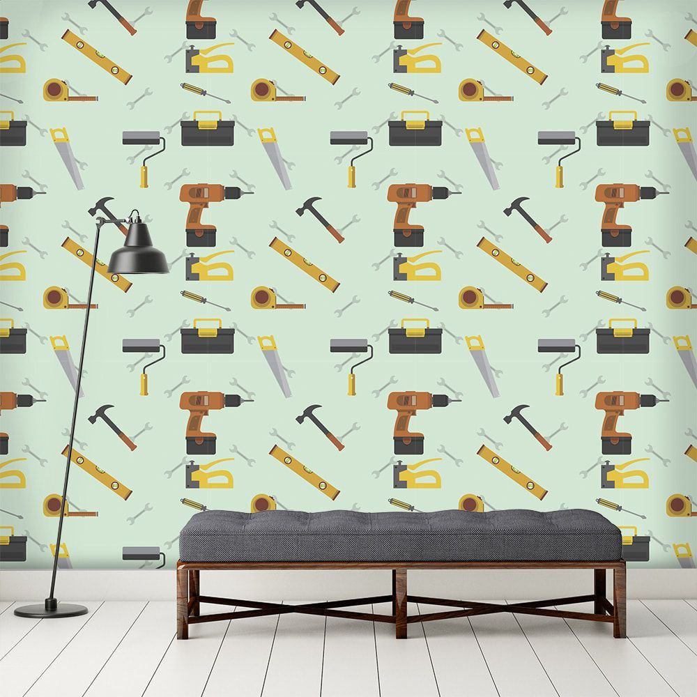O Papel de Parede Ferramentas é fabricado em adesivo vinil fosco 3M, autocolante e com excelente qualidade de impressão. Não precisando de cola.
