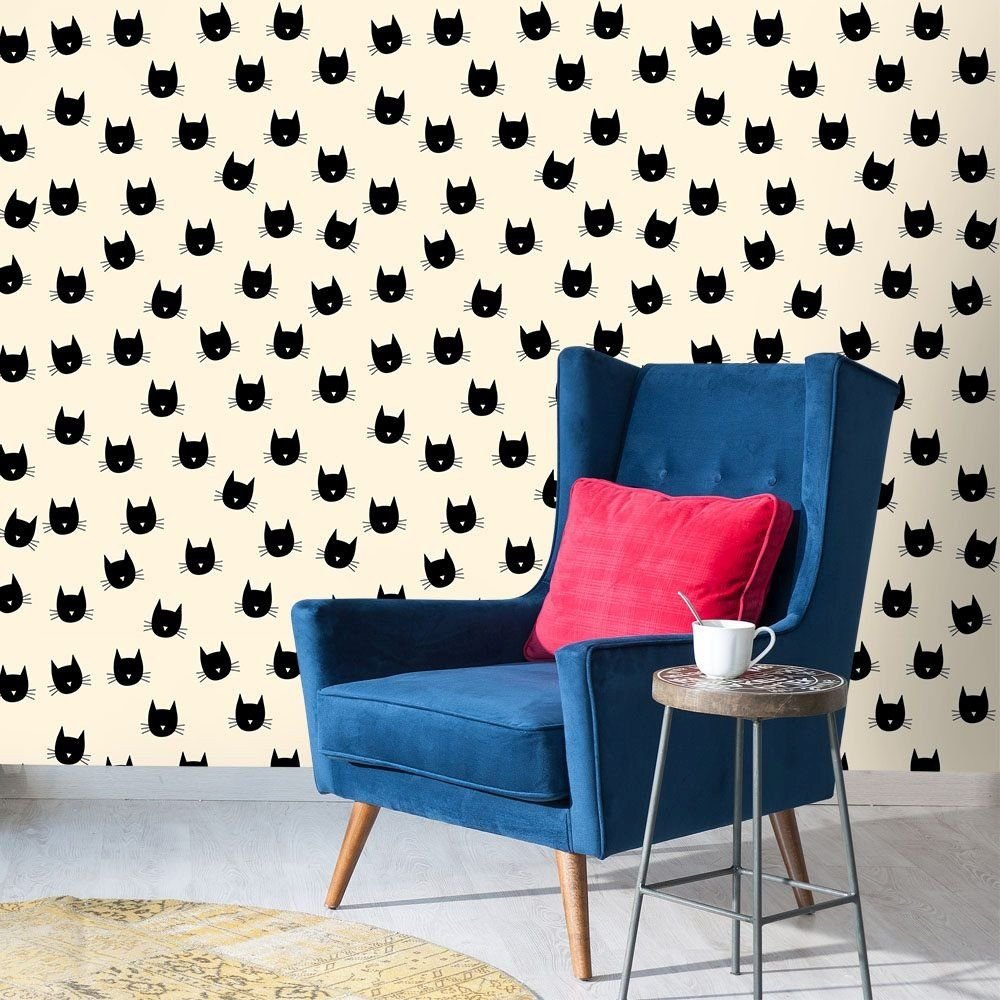 O Papel de Parede Gatos Pretos é fabricado em adesivo vinil fosco 3M, autocolante e com excelente qualidade de impressão. Não precisando de cola.