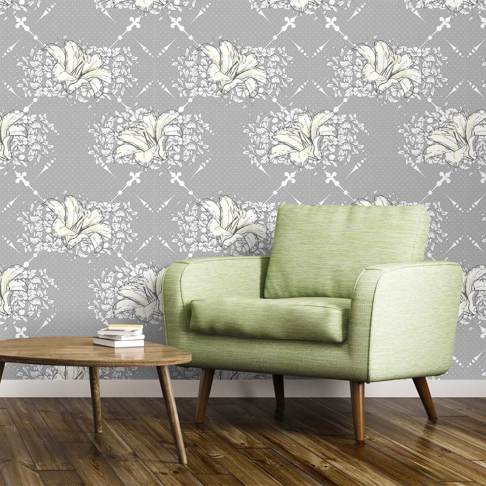 O Papel de Parede Gris de la Flor é fabricado em adesivo vinil fosco 3M, autocolante e com excelente qualidade de impressão. Não precisando de cola.