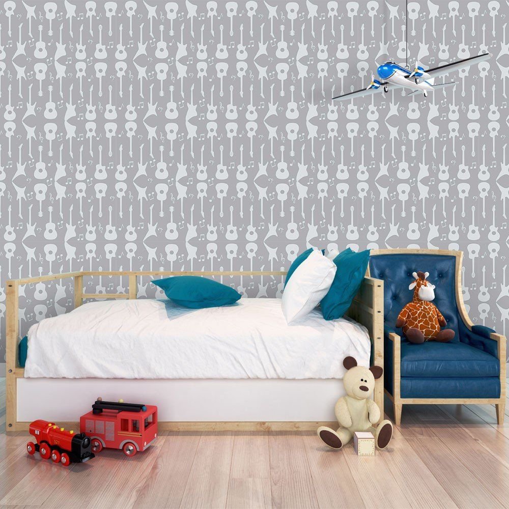 O Papel de Parede Guitar Music é fabricado em adesivo vinil fosco 3M, autocolante e com excelente qualidade de impressão. Não precisando de cola.