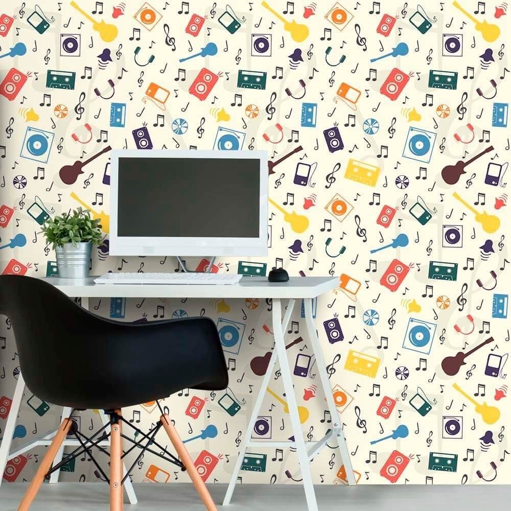 O Papel de Parede Instrumental é fabricado em adesivo vinil fosco 3M, autocolante e com excelente qualidade de impressão. Não precisando de cola.