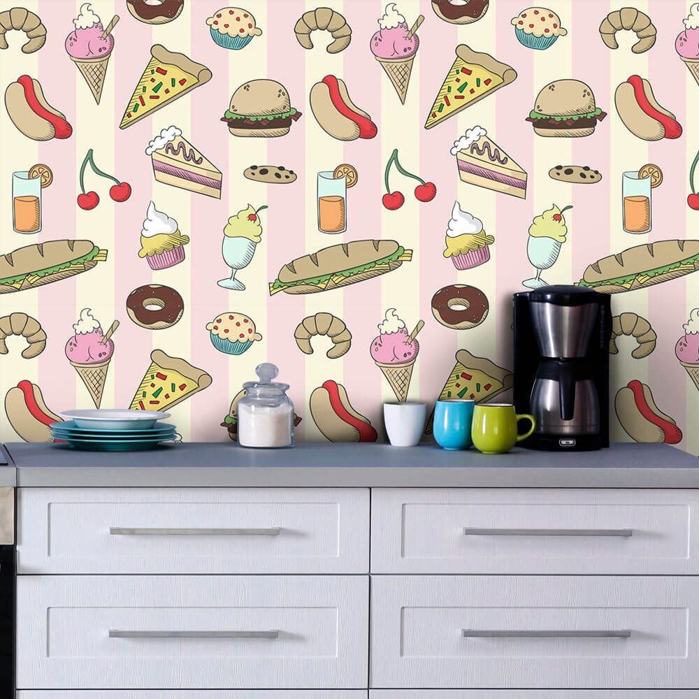 O Papel de Parede Lanchonete é fabricado em adesivo vinil fosco 3M, autocolante e com excelente qualidade de impressão. Não precisando de cola.