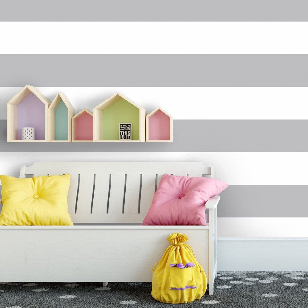 O Papel de Parede Listras Cinzas é fabricado em adesivo vinil fosco 3M, autocolante e com excelente qualidade de impressão. Não precisando de cola.