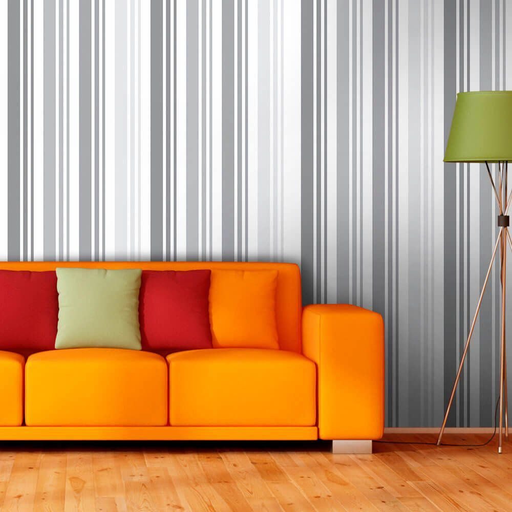 O Papel de Parede Listras Gray é fabricado em adesivo vinil fosco 3M, autocolante e com excelente qualidade de impressão. Não precisando de cola.