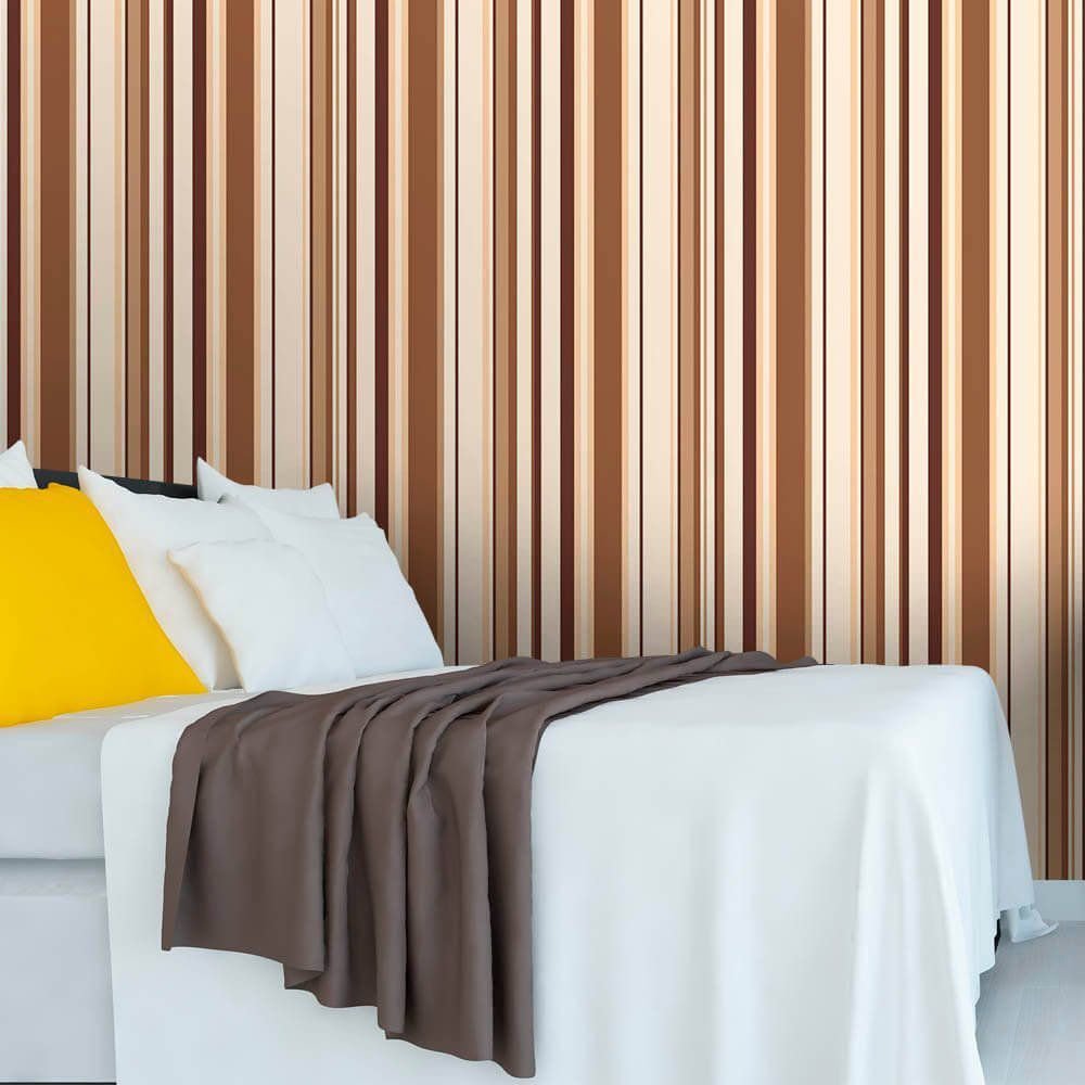 O Papel de Parede Listras Thin Coffee é fabricado em adesivo vinil fosco 3M, autocolante e com excelente qualidade de impressão. Não precisando de cola.