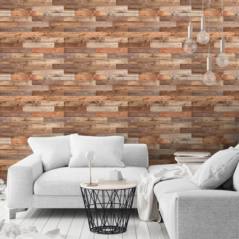 O Papel de Parede Madeira Tomas é fabricado em adesivo vinil fosco 3M, autocolante e com excelente qualidade de impressão. Não precisando de cola.