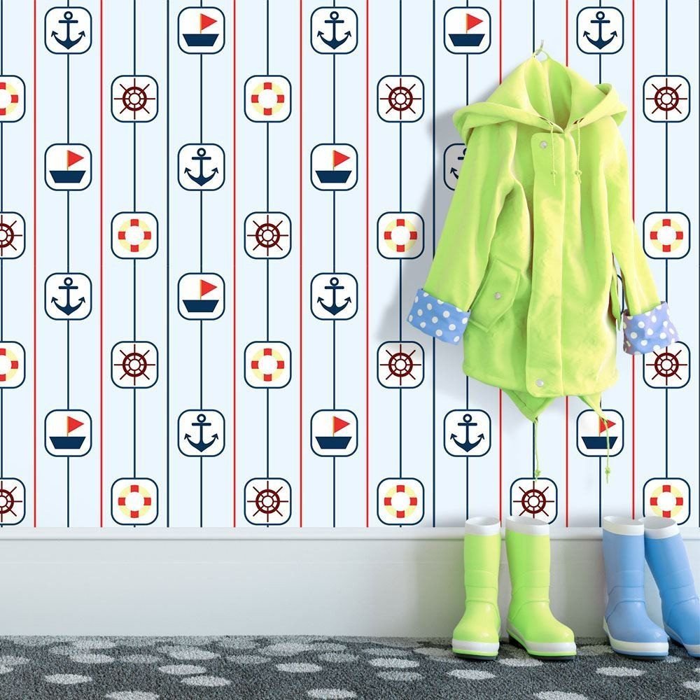 O Papel de Parede Marinheiro é fabricado em adesivo vinil fosco 3M, autocolante e com excelente qualidade de impressão. Não precisando de cola.