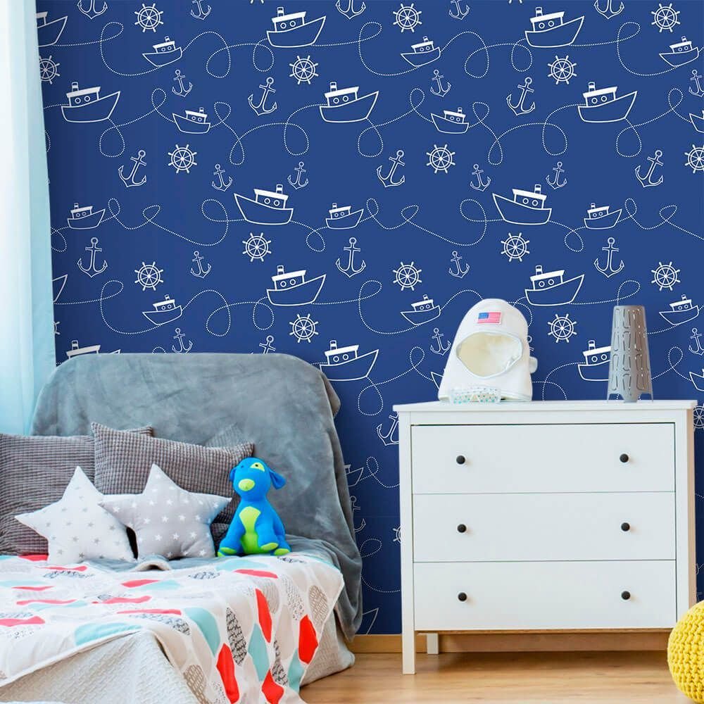 O Papel de Parede Navio Navy é fabricado em adesivo vinil fosco 3M, autocolante e com excelente qualidade de impressão. Não precisando de cola.