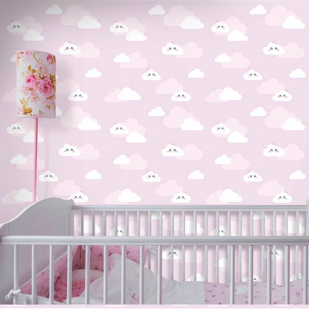 O Papel de Parede Nuvens Clean Girl é fabricado em adesivo vinil fosco 3M, autocolante e com excelente qualidade de impressão. Não precisando de cola.