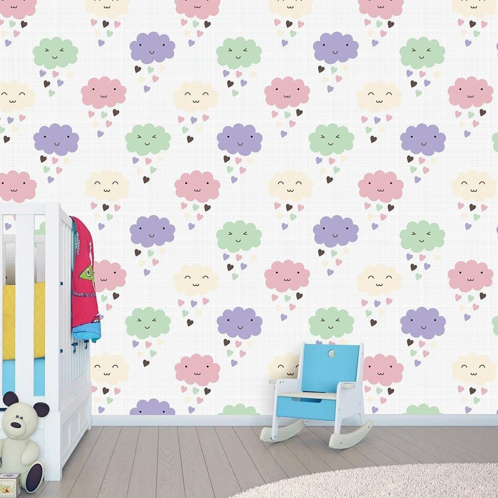 O Papel de Parede Nuvens Fofas é fabricado em adesivo vinil fosco 3M, autocolante e com excelente qualidade de impressão. Não precisando de cola.