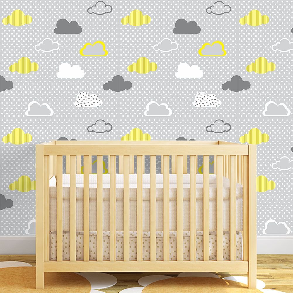 O Papel de Parede Nuvens Yellow é fabricado em adesivo vinil fosco 3M, autocolante e com excelente qualidade de impressão. Não precisando de cola.