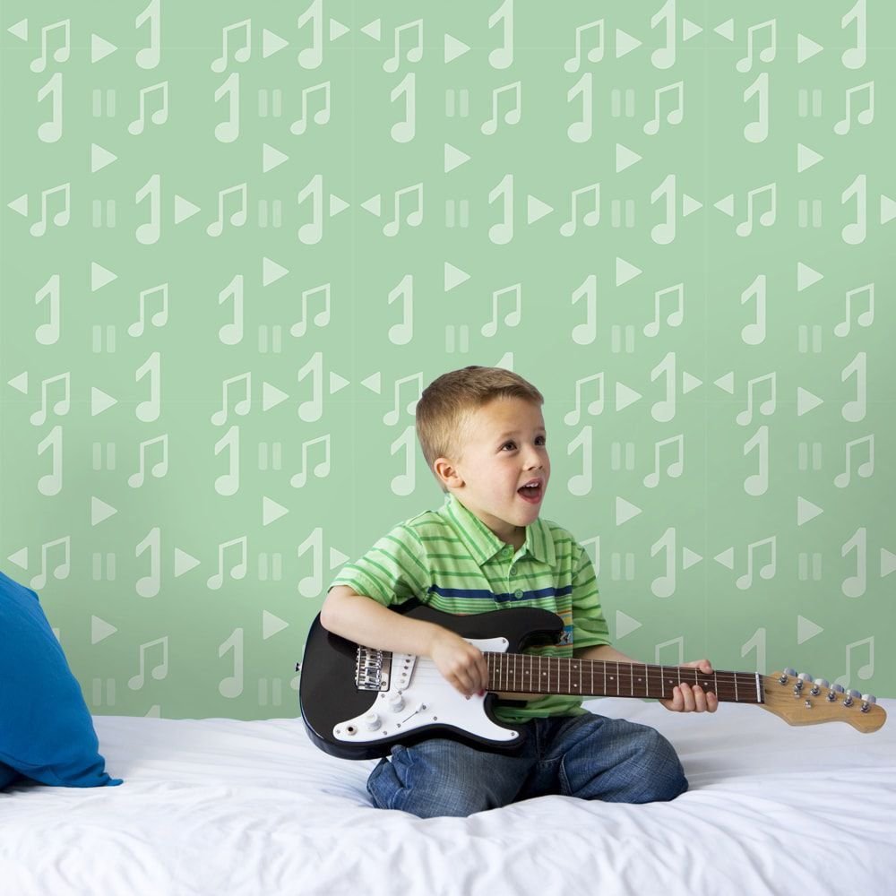 O Papel de Parede Play Verde é fabricado em adesivo vinil fosco 3M, autocolante e com excelente qualidade de impressão. Não precisando de cola.
