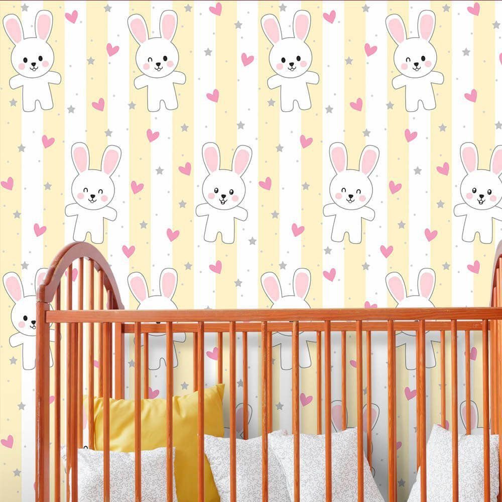 O Papel de Parede Rabbit Light é fabricado em adesivo vinil fosco 3M, autocolante e com excelente qualidade de impressão. Não precisando de cola.