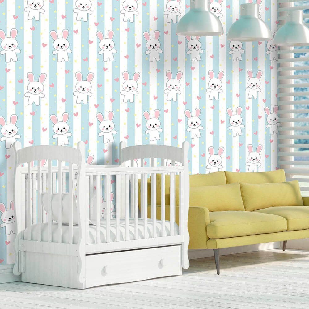 O Papel de Parede Rabbit Soft é fabricado em adesivo vinil fosco 3M, autocolante e com excelente qualidade de impressão. Não precisando de cola.