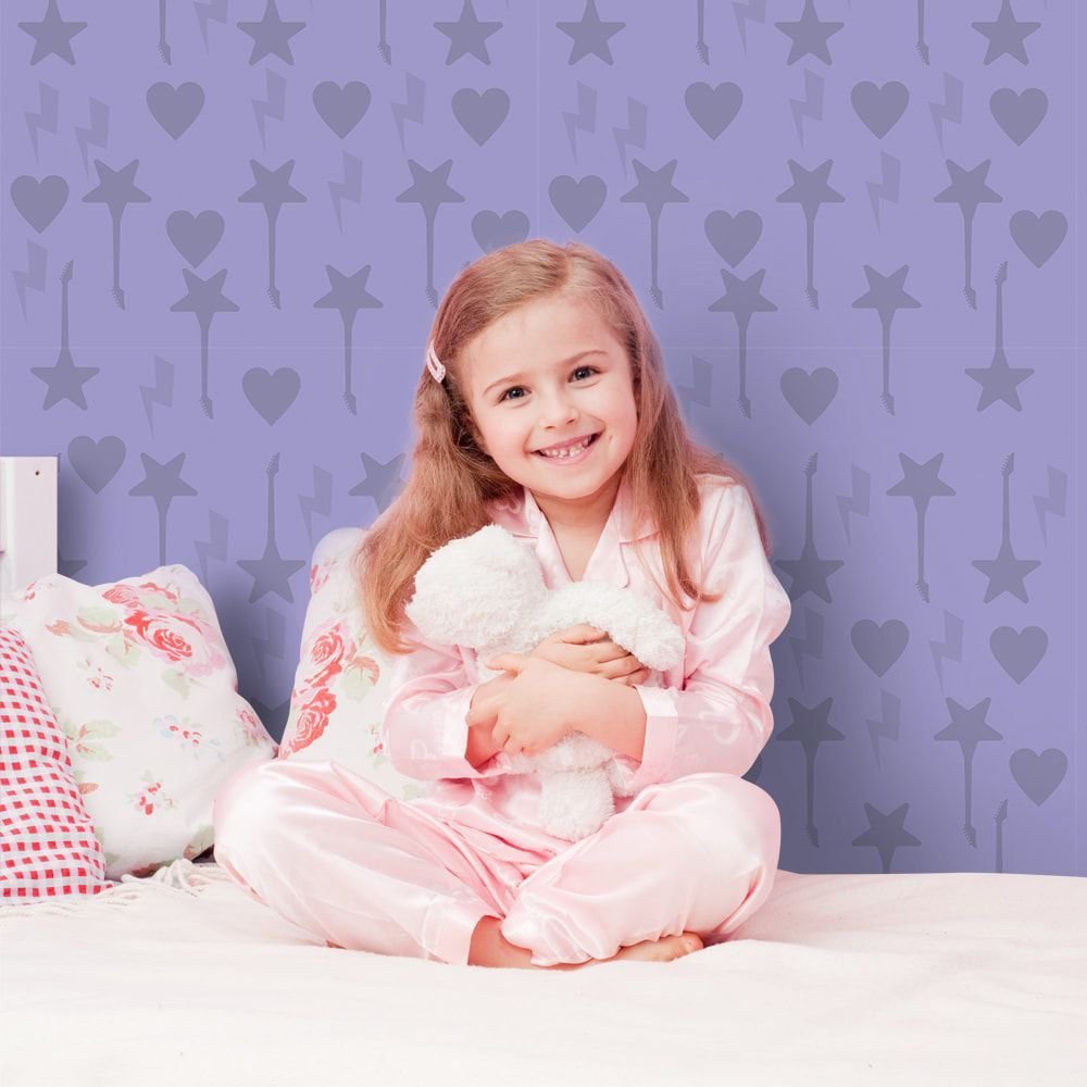 O Papel de Parede Rockstar Purple é fabricado em adesivo vinil fosco 3M, autocolante e com excelente qualidade de impressão. Não precisando de cola.