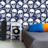 O Papel de Parede Skull Navy é fabricado em adesivo vinil fosco 3M, autocolante e com excelente qualidade de impressão. Não precisando de cola.