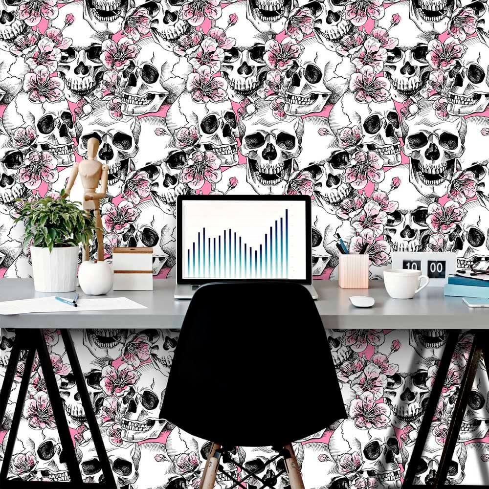 O Papel de Parede Skull With Pink Cherry é fabricado em adesivo vinil fosco 3M, autocolante e com excelente qualidade de impressão. Não precisando de cola.