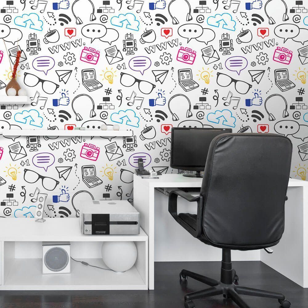 O Papel de Parede Social Media Color é fabricado em adesivo vinil fosco 3M, autocolante e com excelente qualidade de impressão. Não precisando de cola.