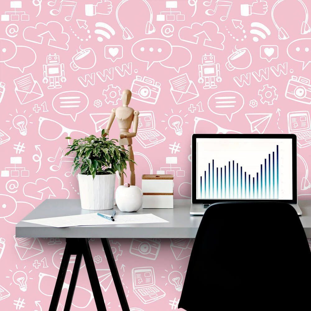 O Papel de Parede Social Media Sweet é fabricado em adesivo vinil fosco 3M, autocolante e com excelente qualidade de impressão. Não precisando de cola.