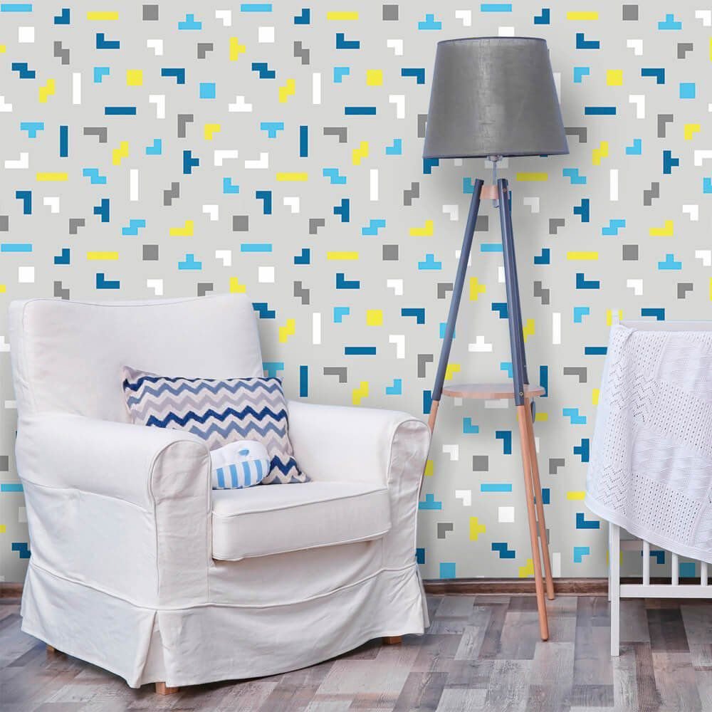 O Papel de Parede Tetris Boy é fabricado em adesivo vinil fosco 3M, autocolante e com excelente qualidade de impressão. Não precisando de cola.