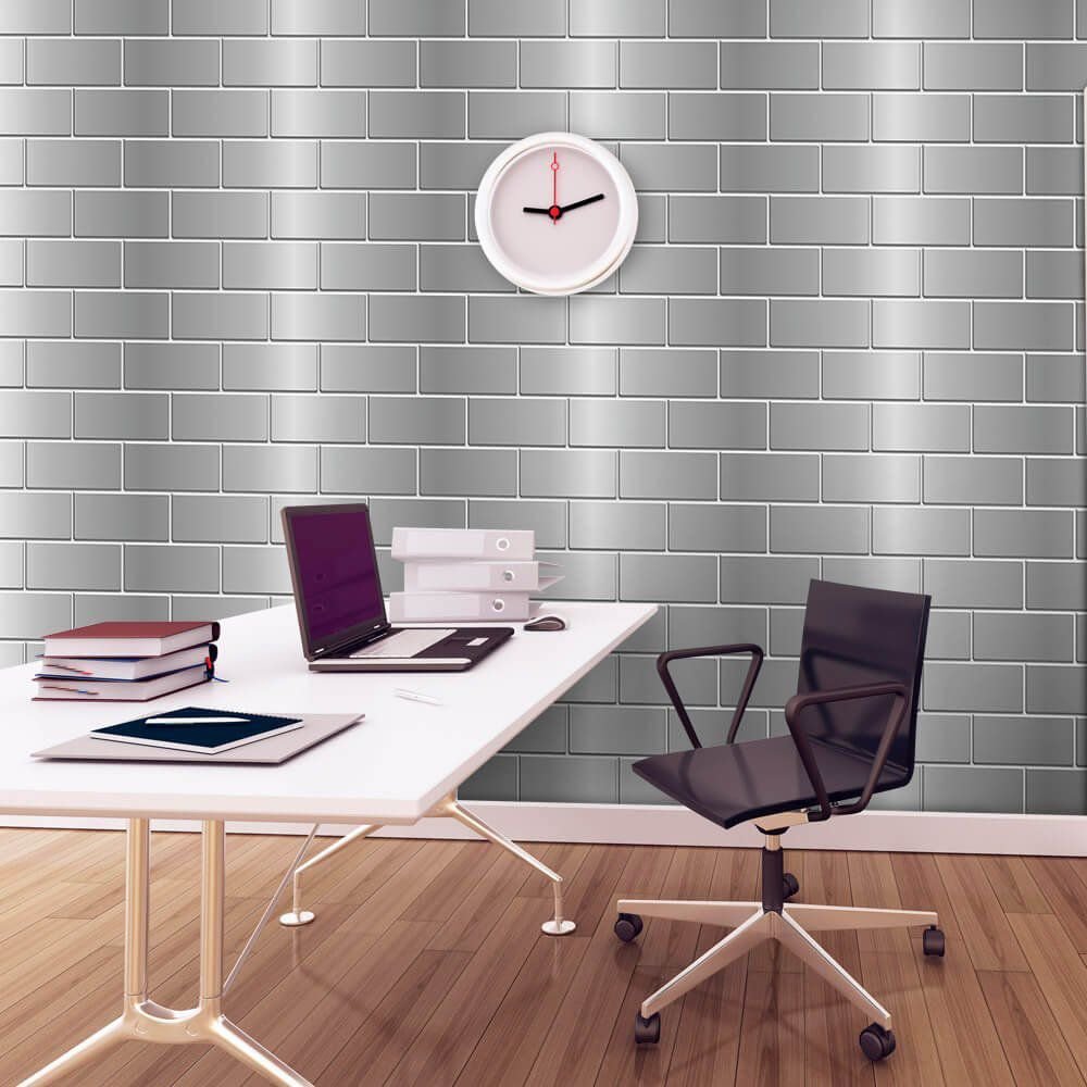 O Papel de Parede Tijolo Metálico é fabricado em adesivo vinil fosco 3M, autocolante e com excelente qualidade de impressão. Não precisando de cola.