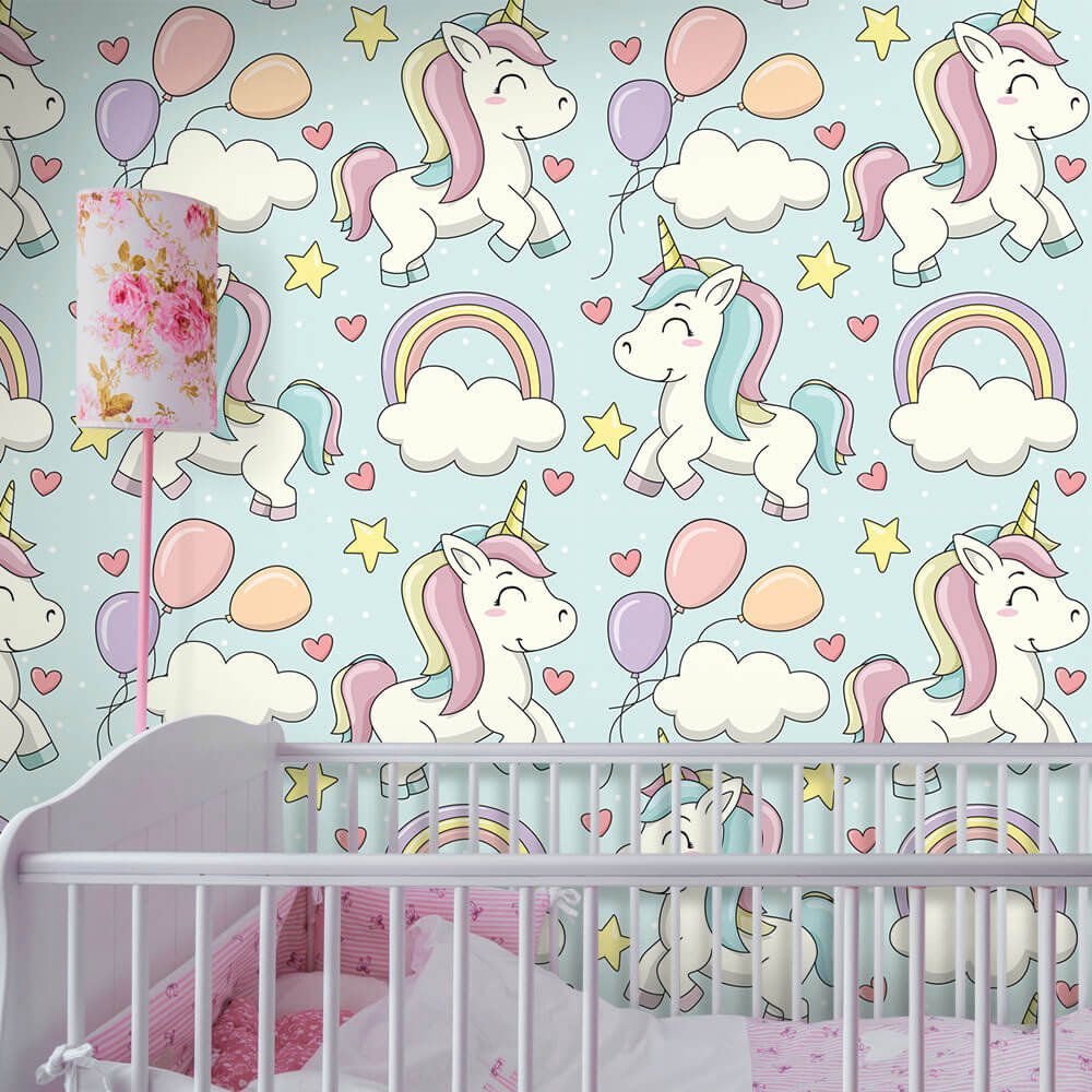 O Papel de Parede Unicórnios Fofos Soft é fabricado em adesivo vinil fosco 3M, autocolante e com excelente qualidade de impressão. Não precisando de cola.